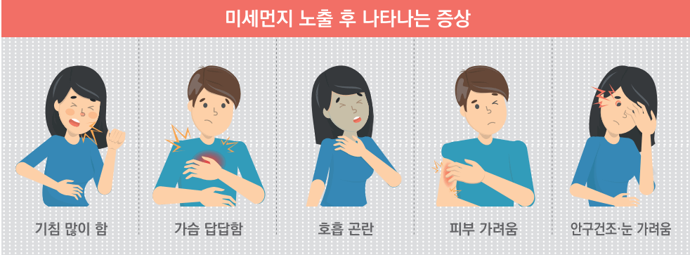 이렇듯 평소에 신체 약한 부분이 조금 더 민감해진다거나, 컨디션이 안 좋다고 느껴질 때는 미세먼지로 인한 질병일 수 있습니다. 초기에 치료받을 수 있도록 전문의의 진료를 받아 보시기를 권장합니다.
